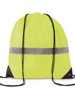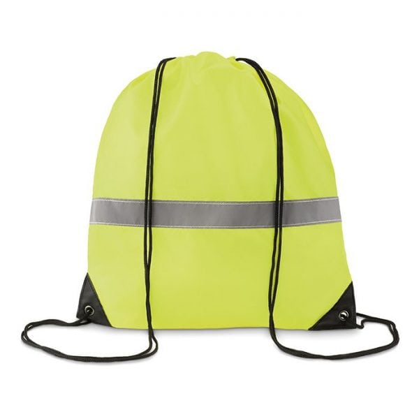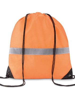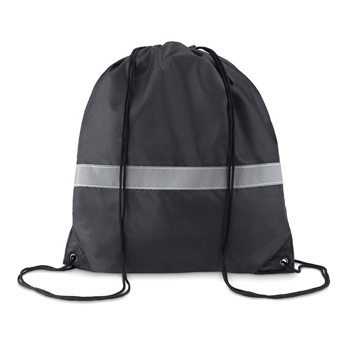 Drawstring bag in 190T polyester with reflective stripe.